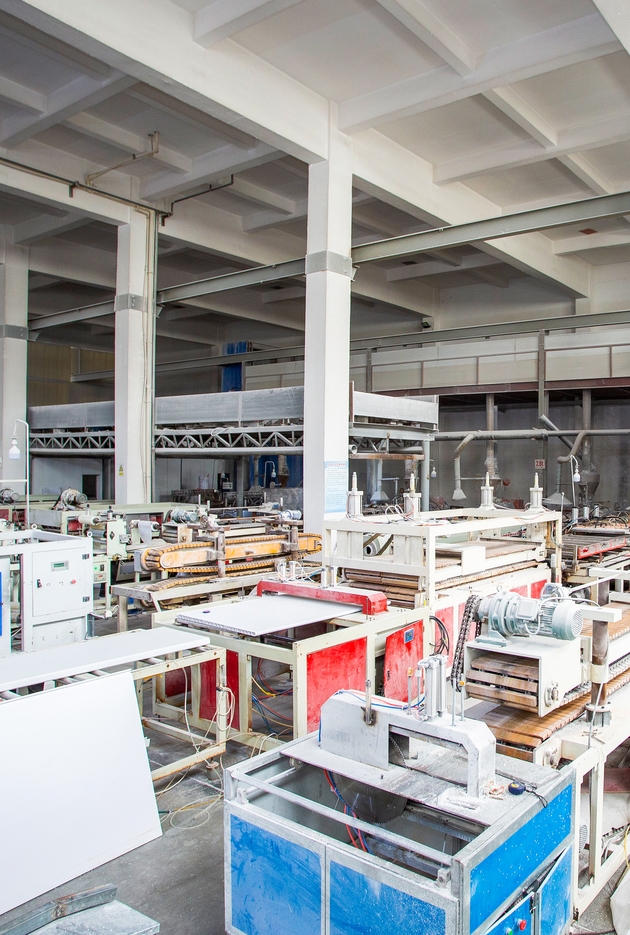 De fabriek heeft een oppervlakte van 6.000 vierkante meter en is uitgerust met 32 volautomatische extrusielijnen (waaronder 10 extruders van 65, 2 extruders van 80 en 20 extruders van 51). (inclusief 10 65 extruders, 2 80 extruders en 20 51 extruders), die kunnen voldoen aan de efficiënte continue productie van PVC, WPC en andere materialen. Door te vertrouwen op de combinatie van meerdere modellen, realiseert het de geïntegreerde werking van mengen, extruderen, koelen en vormen tot snijden.